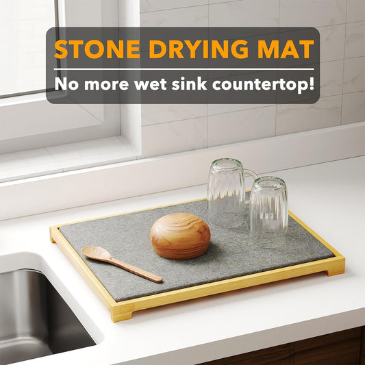 SpaceAid Diatomaceous Earth Stone Dish Drying Mat for Kitchen Counter, Gray
