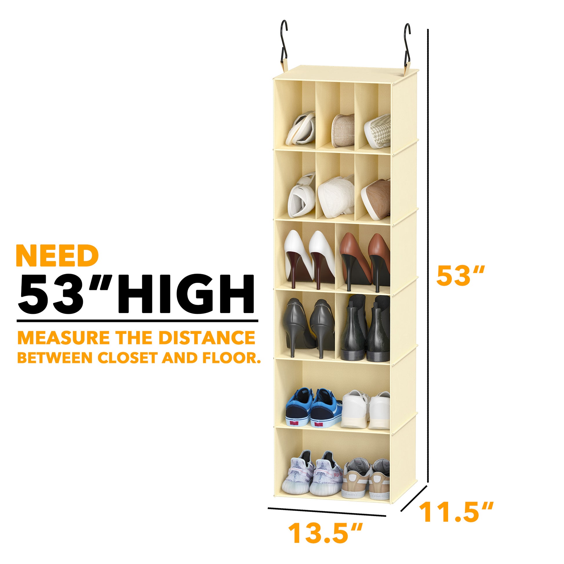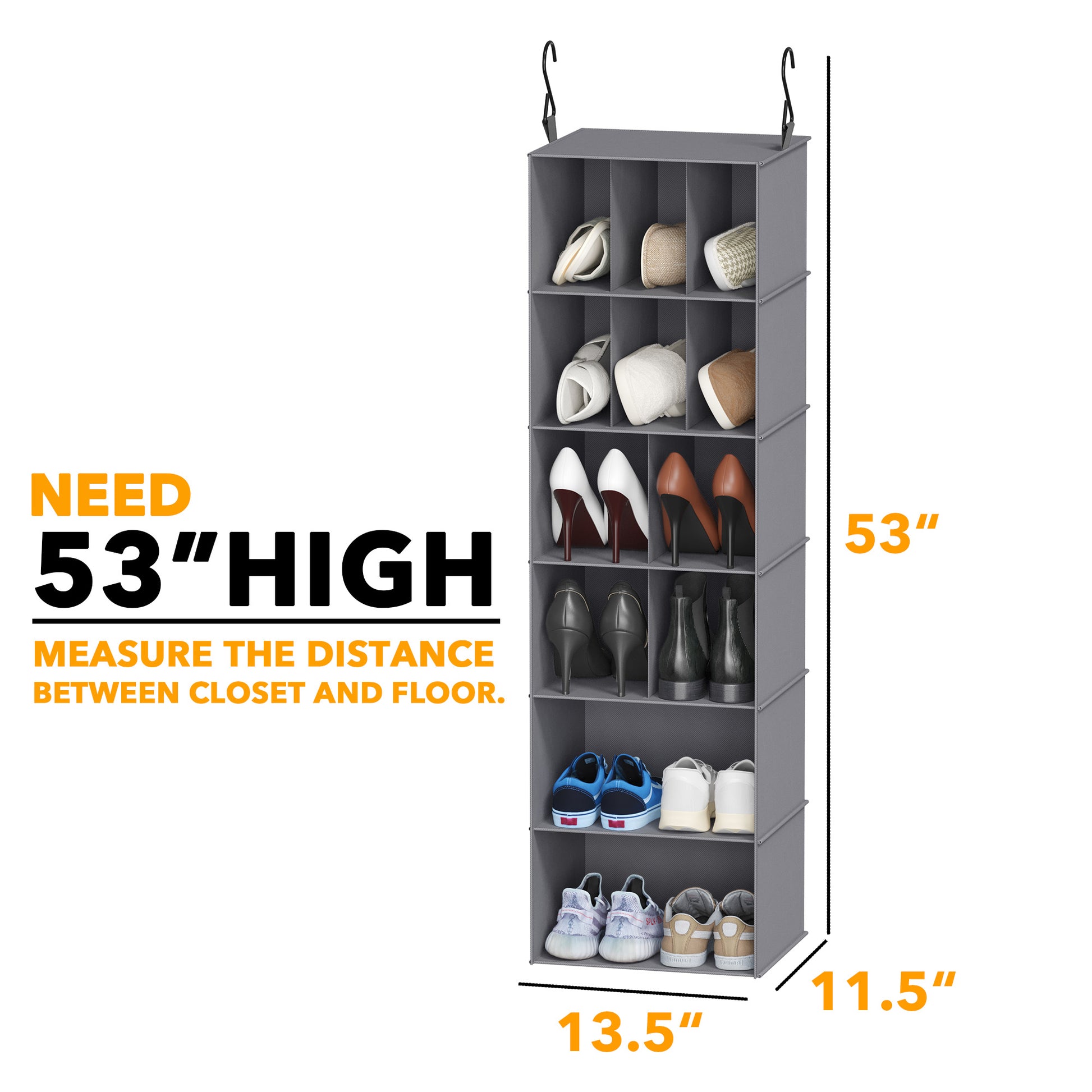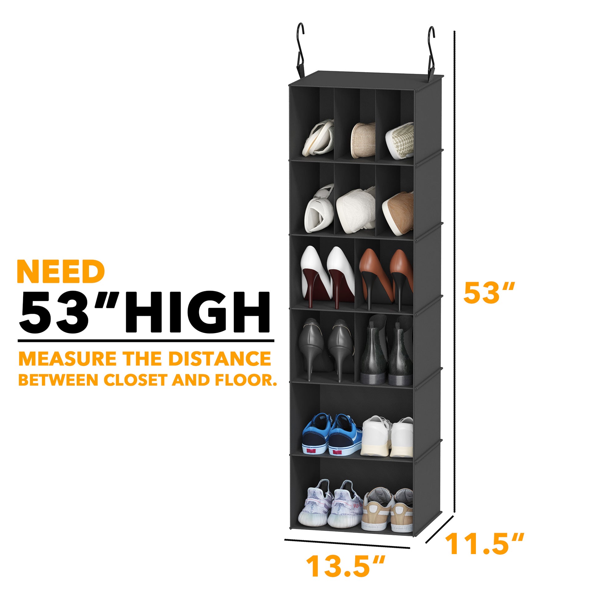 Dimensions: 53" H X 13.5" W X 11.5" D. No installation required—simply hang the organizer when needed. Fold it flat when not in use to save space.